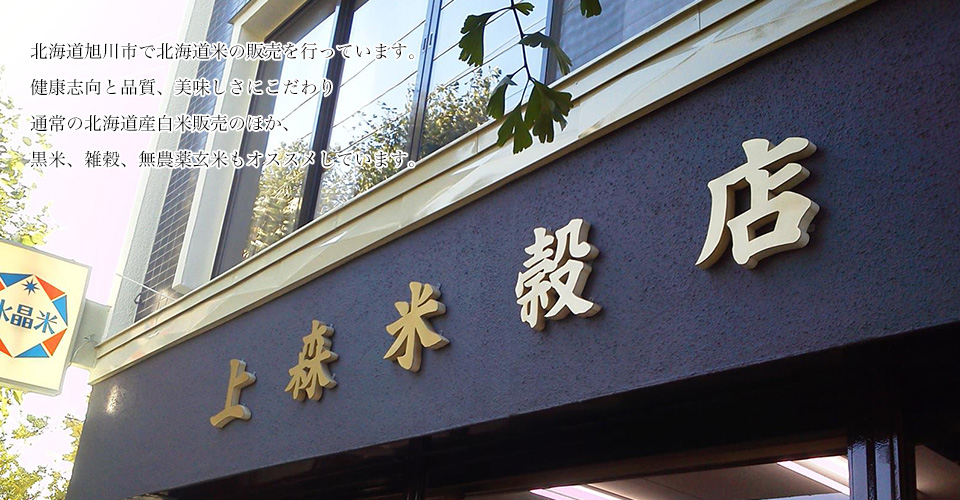 黒米、ゆめぴりか、ななつぼし、ゆきひかり、無農薬低農薬玄米、雑穀販売 上森米穀店~北海道旭川市。