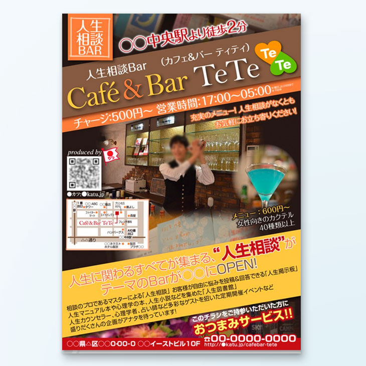 カフェ&バー オープンチラシデザインチラシ作成専門 デザイン+印刷のCHIRASAKU チラサク。