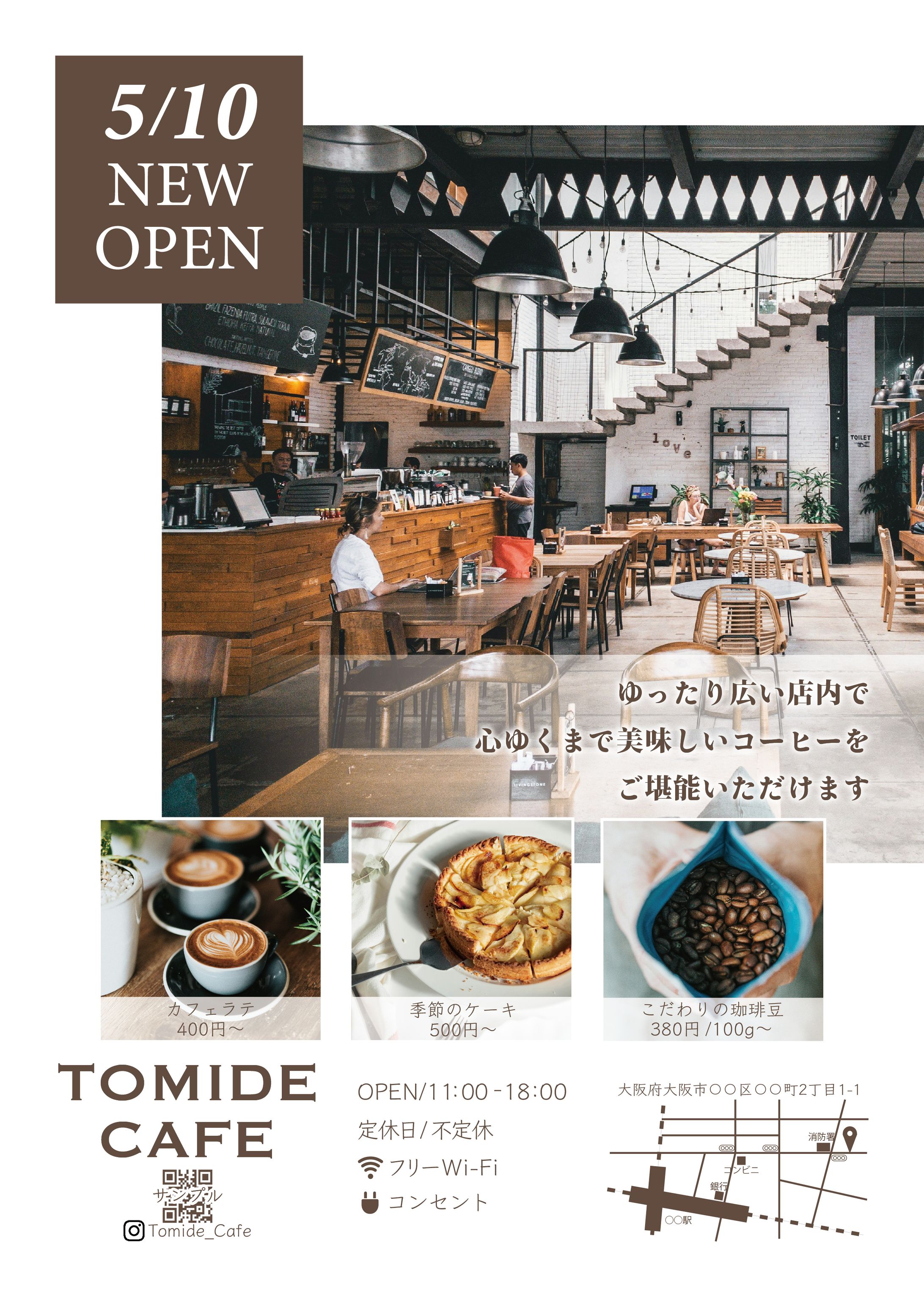 喫茶店・カフェ_開業・オープンチラシ・フライヤーの無料デザインテンプレート - ネット印刷グラフィック。