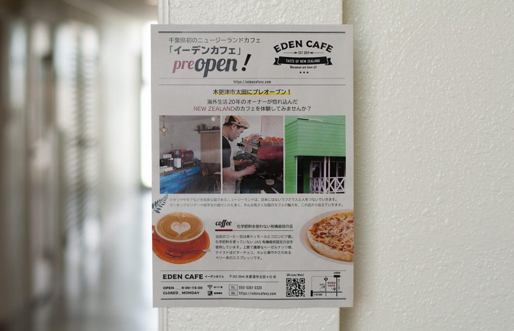 制作事例 木更津市太田・イーデンカフェさんのチラシとショップカード│Syllable design。