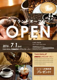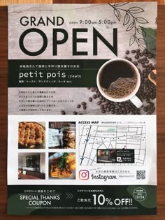 グランドオープン ポスター」のアイデア 8 件パンフレット デザイン, カフェチラシ, cafe チラシ。