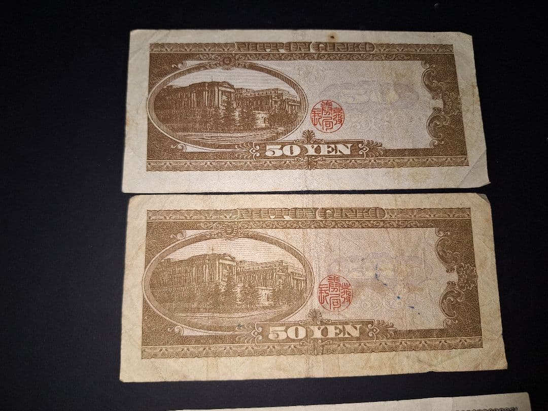 旧紙幣 昔のお札 ピン札 大正小額紙幣50銭 1円札 日本銀行。