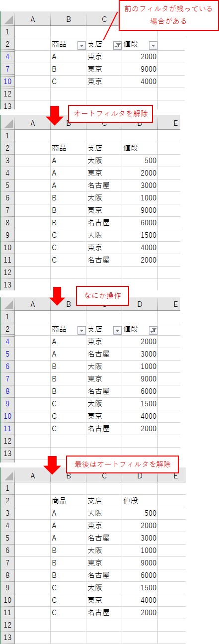 Excel エクセルにてフィルタの解除ができない クリアできない 原因と対策 オートフィルターが削除できない:消えない:元に戻す おでかけラボ。