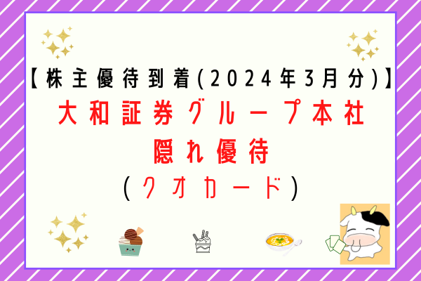 株主優待到着 2024年3月分隠れ優待大和証券グループ本社 クオカード- 40代中にFIREめざす子育てパパ 30代。