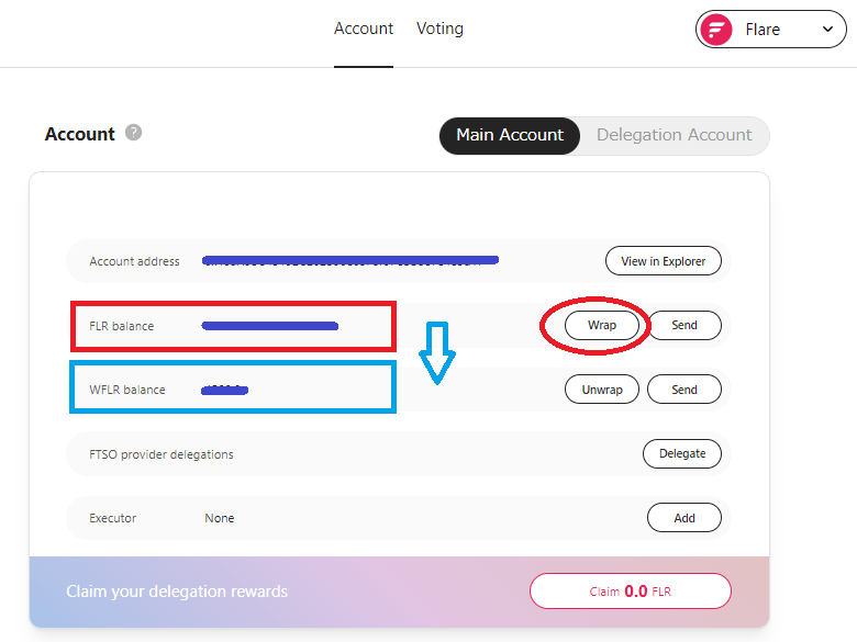 メタマスクでFLRをWrapしてデリゲートでダブル報酬受取方法。