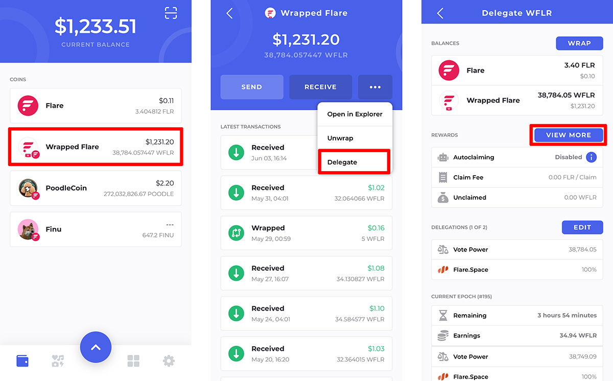 FLAREFLRトークンをラップしてデリゲートする方法ledgerwallet。