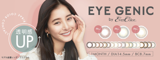 新木優子イメージモデルのカラコンブランド『EYE GENIC by EverColorアイジェニック バイエバーカラー 』から、すーっと瞳に馴染む“こなれた透明感”を叶えるレンズが3色新登場!株式会社アイセイのプレスリリース。