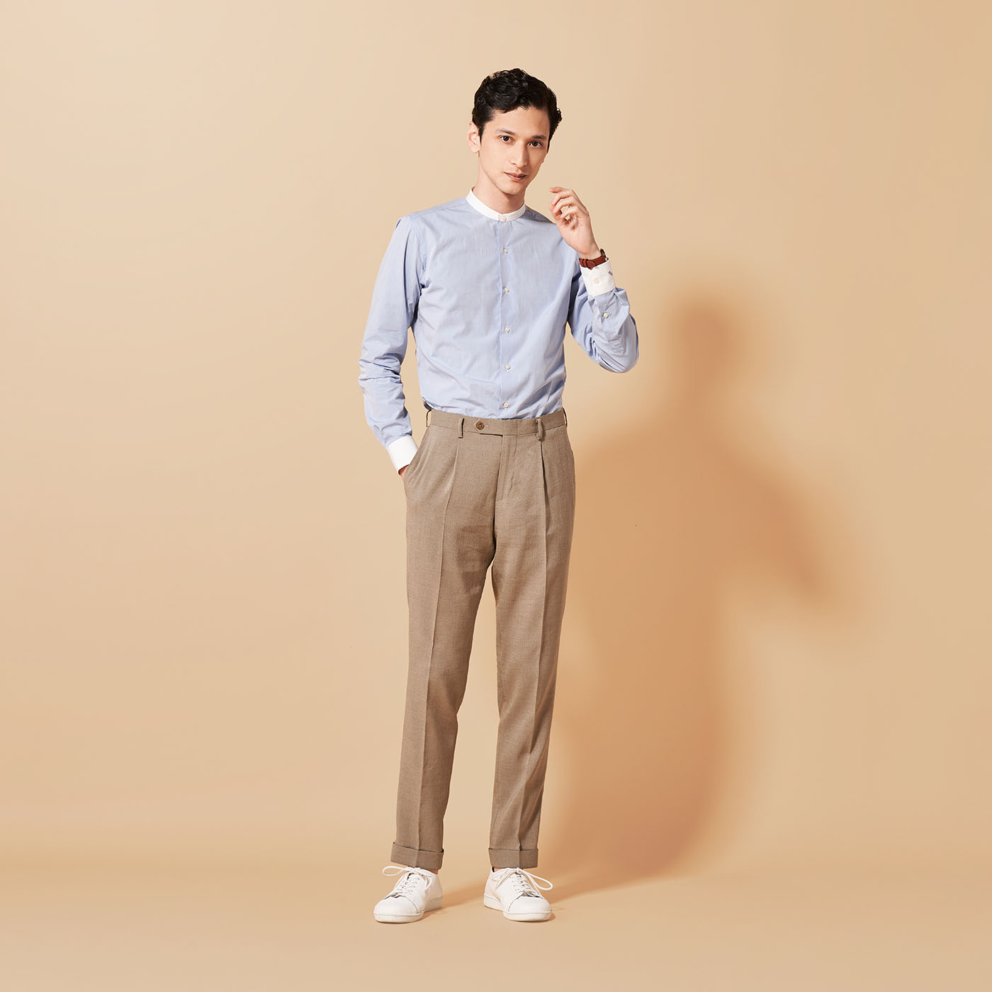 メンズオフィスカジュアル襟なしシャツで洗練された印象に!周りと差がつくコーディネート5選 - メンズカジュアルスーツ専門通販MODDESTY モデストリ。