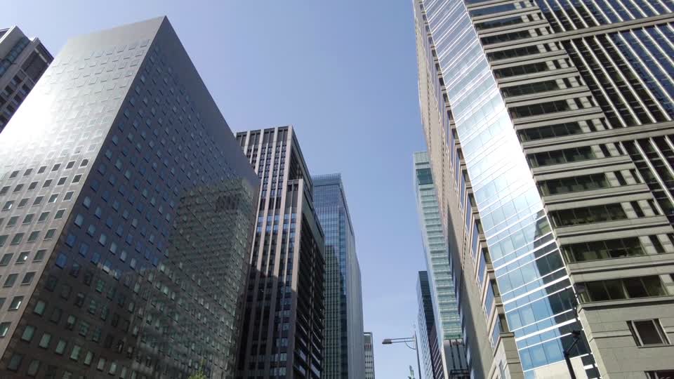 ビジネス街のビルを見上げるの動画無料の動画素材サイト「動画AC」。
