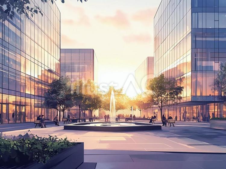 オフィス街にある憩いの広場のイラストイラスト - No: 25662753無料イラスト・フリー素材なら「イラストAC」。