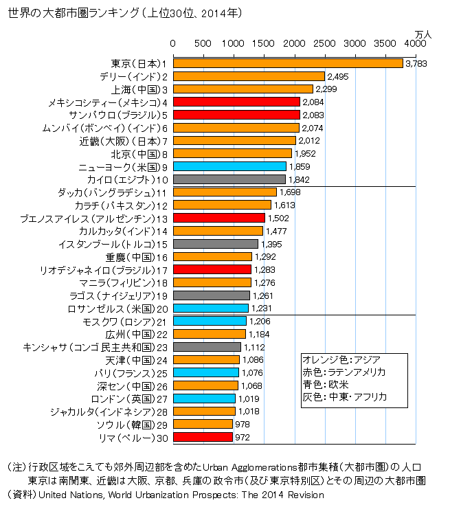 世界の巨大都市人口ランキング ー 人口1000万人以上の巨大都市 メガシティ を地図で紹介ESRIジャパン。