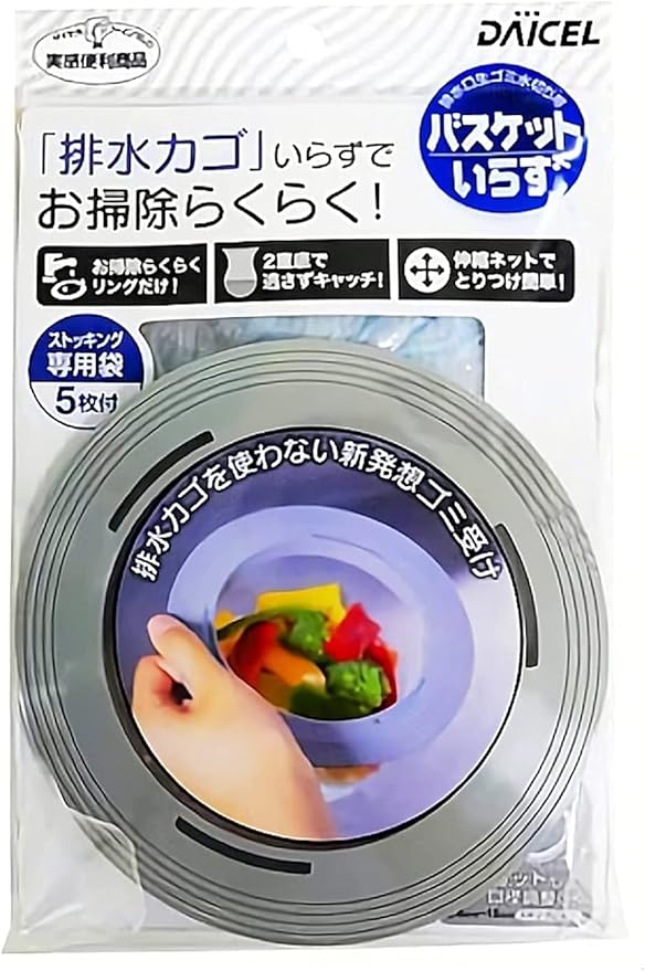 原産国:日本 材質:本体:ポリプロピレン 商品サイズ:14.4cm ×14.4cm ×1.3cm 内容量:1個入 種類:アソートなし いやな排水口のお掃除が簡単に!排水カゴを使わない! お手入れ簡単! 市販の「口ゴム付きの排水口用水切りネット」をリングに装着して使用します。 ゴミ。