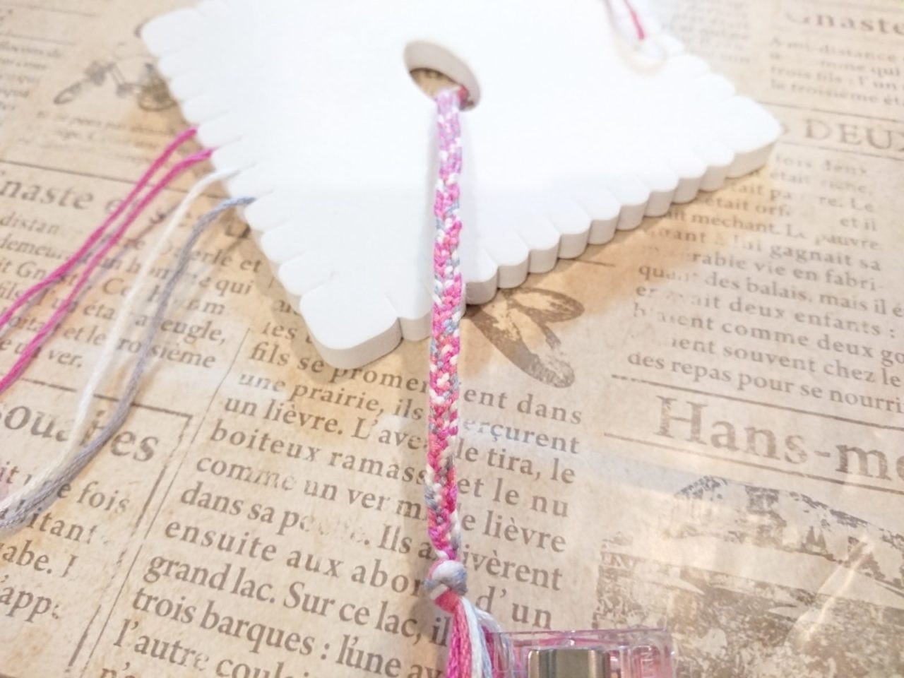 ダイソーの組みひもメーカーで、ミサンガ作り。羊毛フェルトマスコット工房 ベガのひつじ。