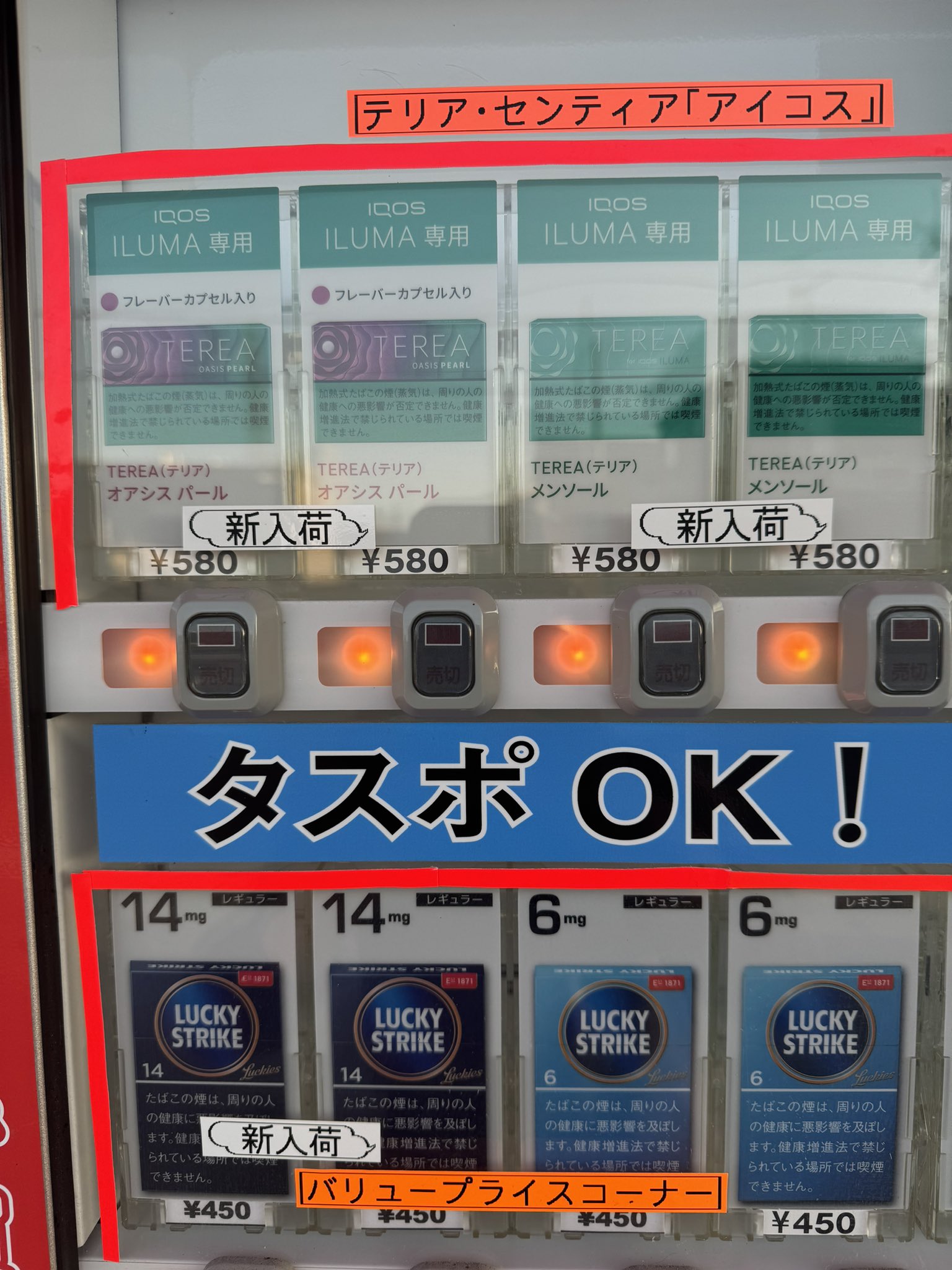 ワイズべンディングサービス51 on X: "香川県多度津町の道隆寺横の株式会社サンエイさんの自動販売機の商品入れ替えに来ました!新たに入った銘柄は、 「テリア オアシスパール メンソール」などが入荷しました! 免許証、マイナンバーでも購入可能です!!香川。
