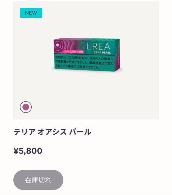 IQOS ILUMA アイコス イルマ 専用 テリア・オアシスパールが欠品中です。大阪 京橋たばこセンターこだま 新着情報。