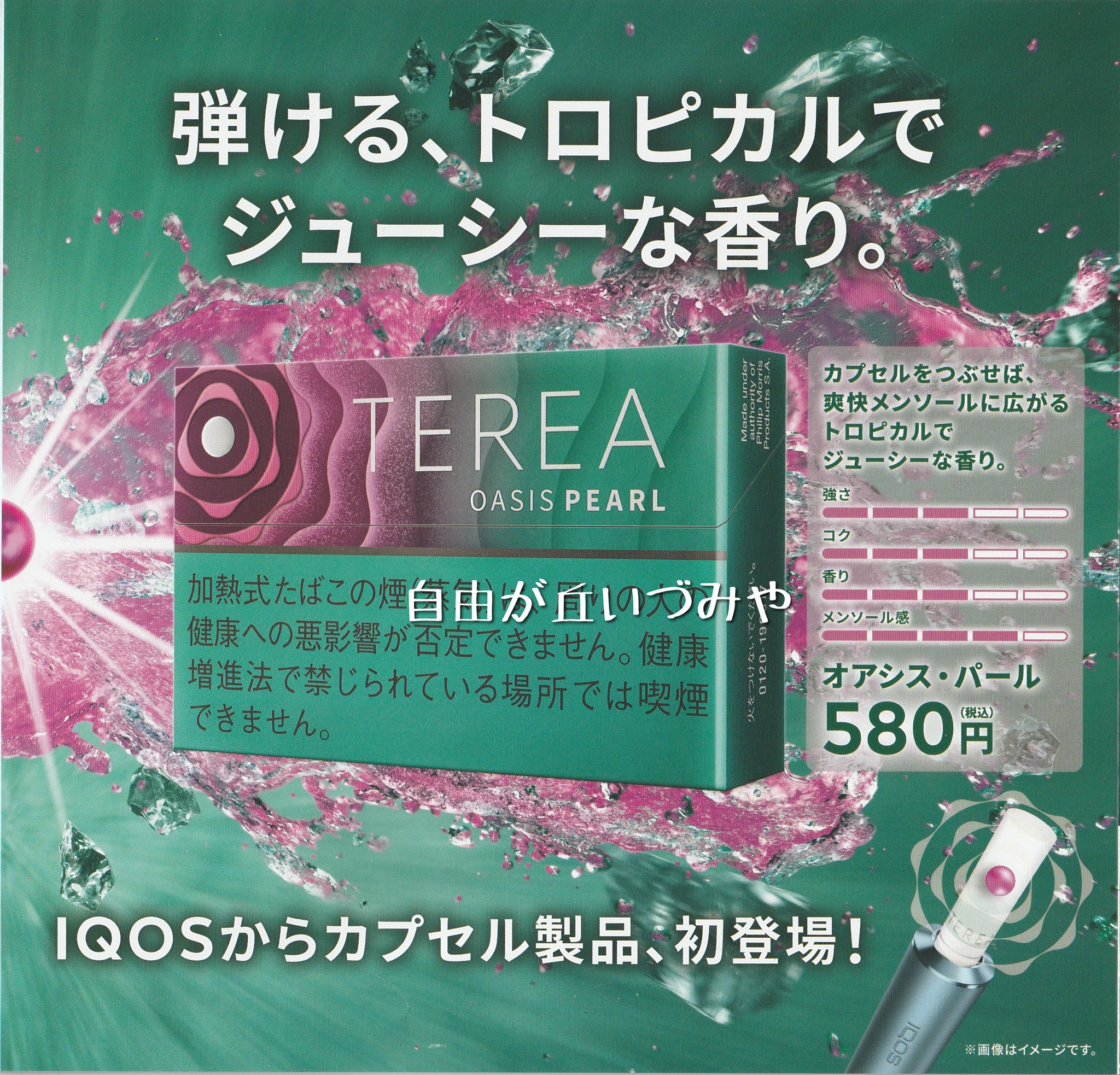 自由が丘 たばこのいづみや on X: "iQOSイルマ専用たばこ新銘柄 「テリア オアシス パール」 が発売されます。カプセルを潰せば、爽快メンソールに広がるトロピカルでジューシーな香り。 20本入580円 2月6日入荷予定 送料200円からの通信販売https:t.co bPJZVtJqBs。