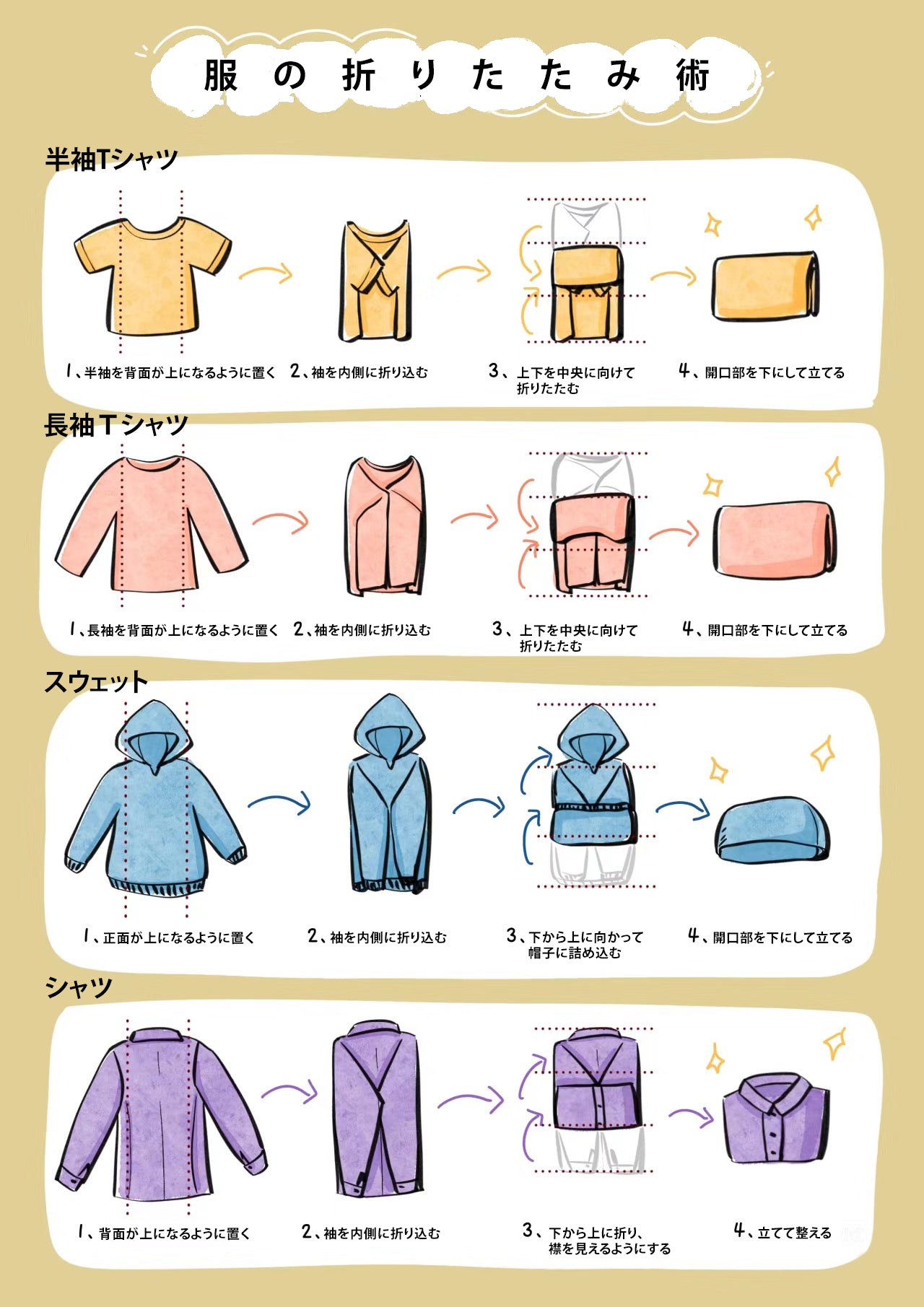きれいにたためて収納力がアップする!アイテム別洋服のたたみ方3選 - 片づけ収納ドットコム。