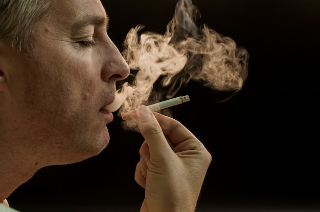 タバコや麻薬を吸う男は、中毒中毒とお金のホラーを使うという概念である、転がされたドルですPremium写真。