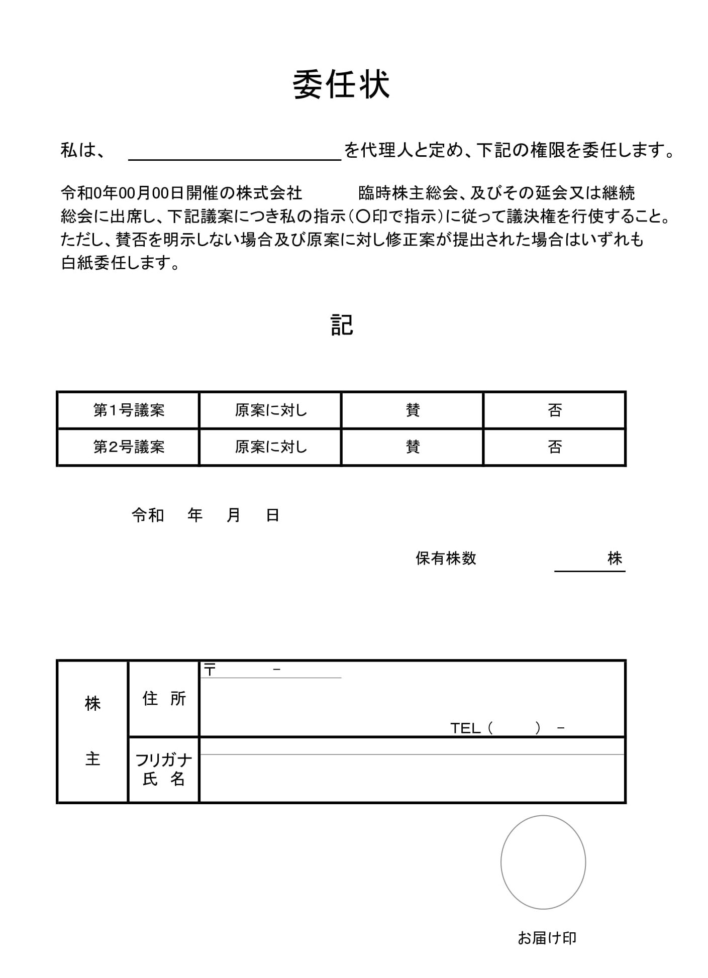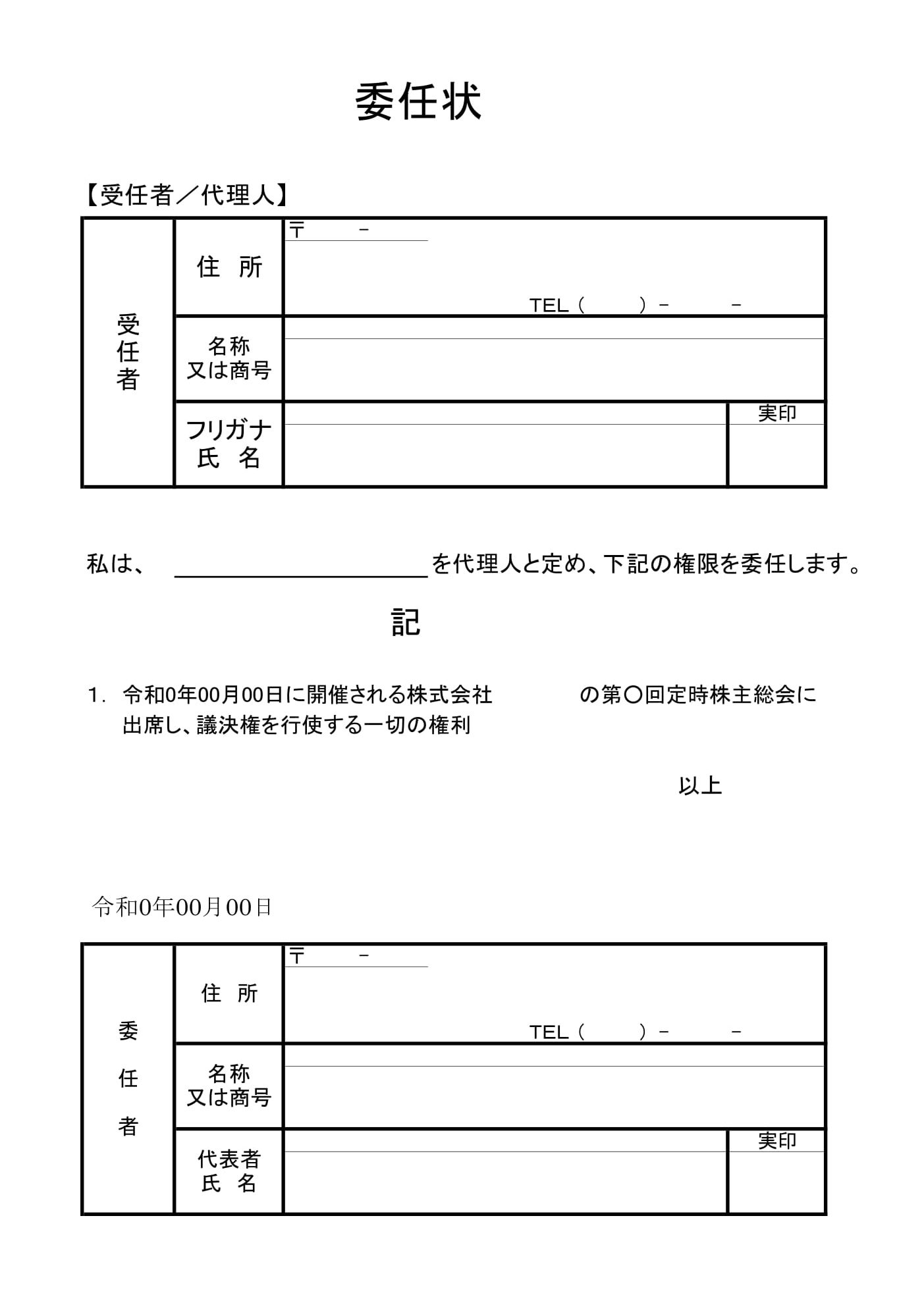 文書 テンプレートの無料ダウンロード: 株主総会の議決権行使に関する委任状の書き方・書式・フォーマット。