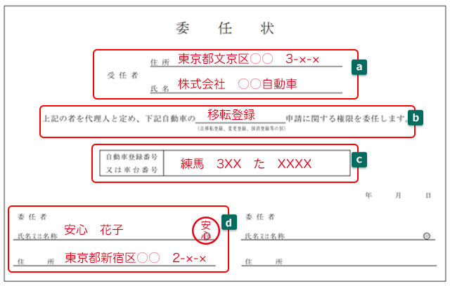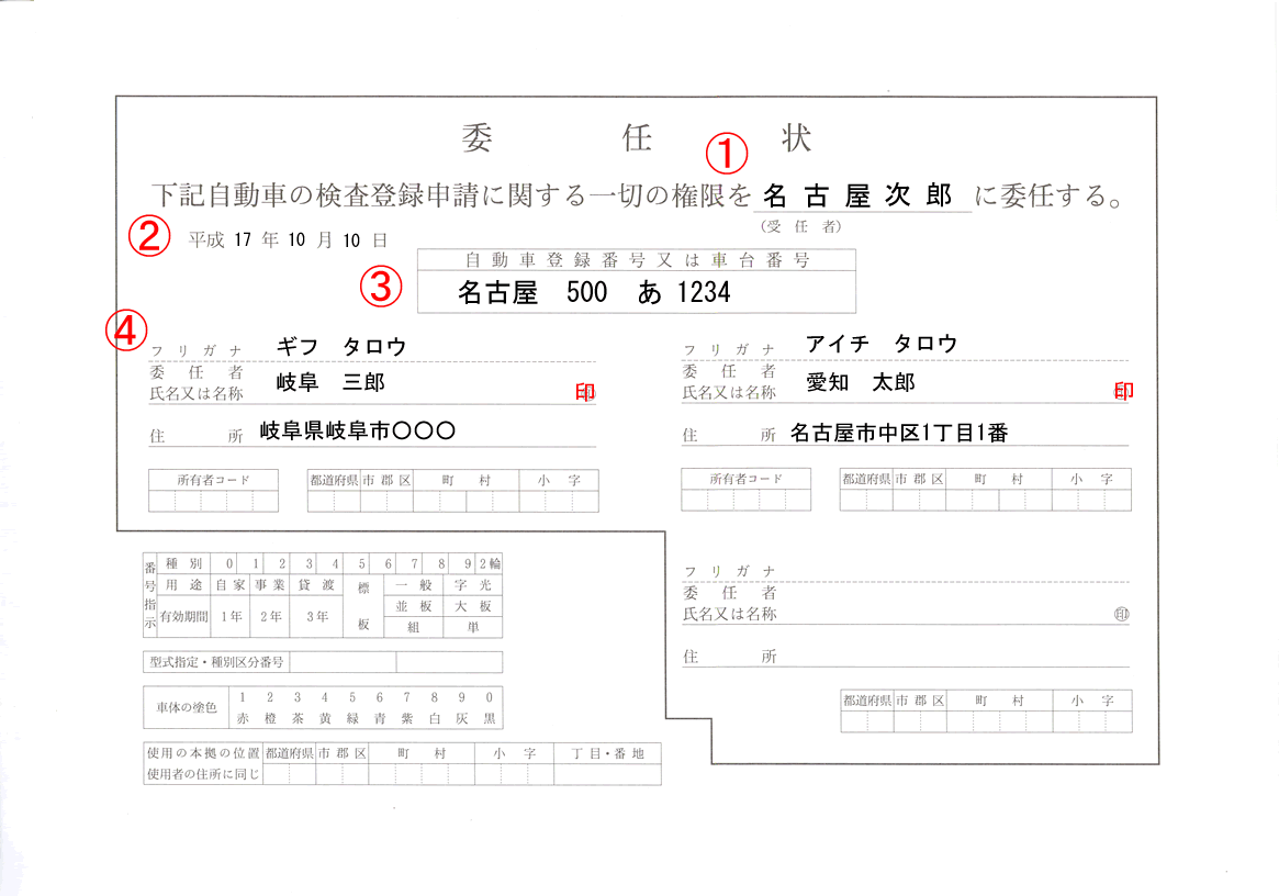 委任状 自動車登録 赤枠説明付きbizocean ビズオーシャン。