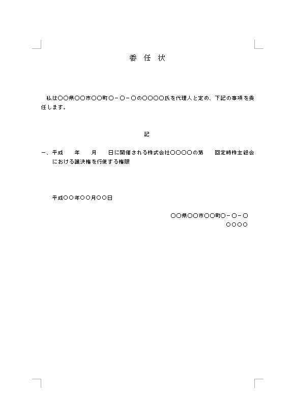 ワード 議決権の委任状のテンプレート 雛形無料イラスト素材素材ラボ。