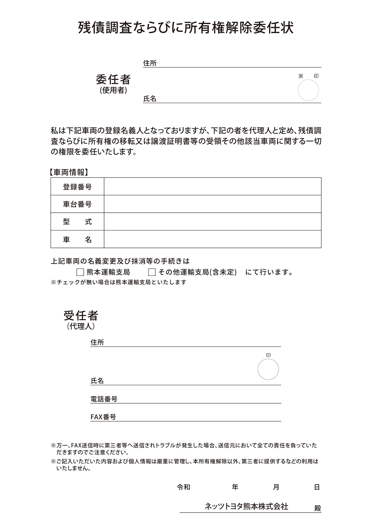 所有権解除委任状ダウンロードネッツトヨタ熊本。