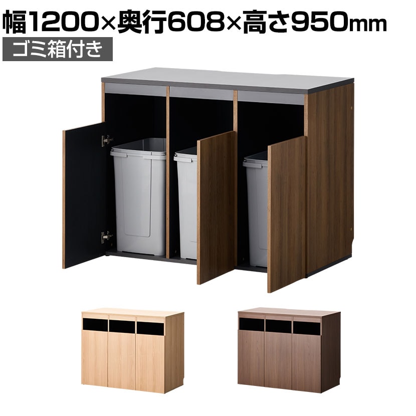 送料無料ゴミ箱収納用カウンター 3連タイプ ゴミ箱3個セット 木製 幅1200×奥行608×高さ950mm ダストボックス キッチンカウンターペールカウンター アジャスター付き 70L 大容量 木目調 おしゃれ 分別 オフィスの通販オフィス家具通販の オフィスコム。