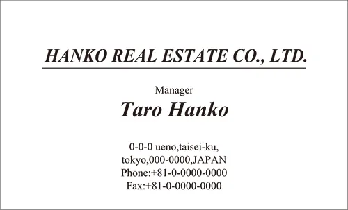 英語表記見本名刺テンプレートサンプル – はんこ屋さん21 公式。