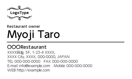 洋食レストラン_英語表記_表面_22808の名刺無料デザインテンプレート印刷のラクスル。