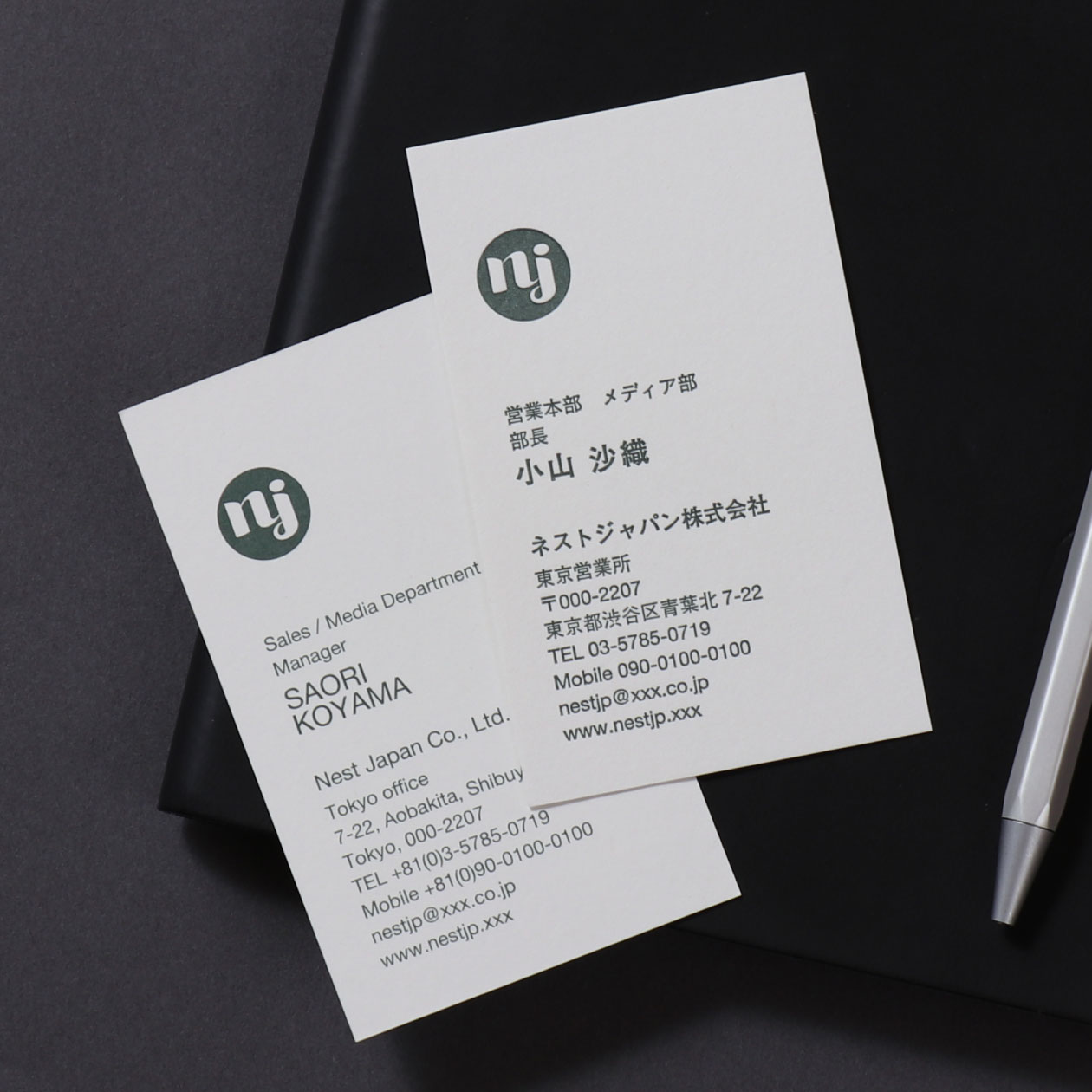 かんたんデザイン入稿名刺 タテ向き 両面カラー印刷 HP-01 英語表記。