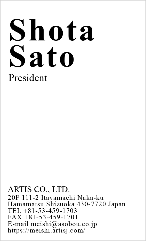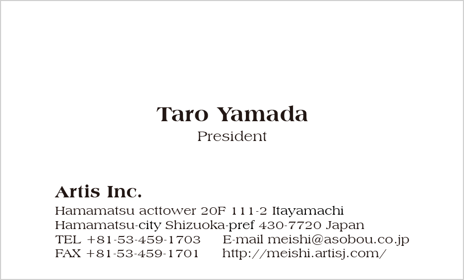 英語表記名刺名刺作成ならアーティス名刺工房 最短即日発送。