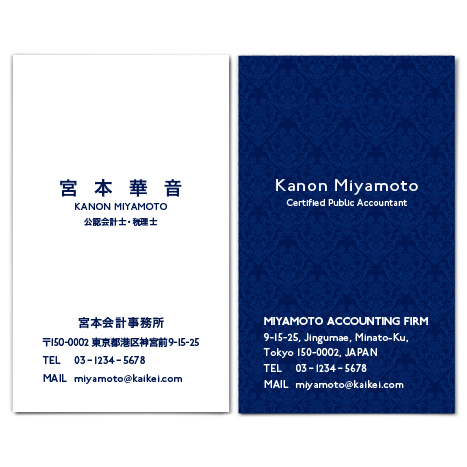 ダマスク柄の名刺デザイン・ブルー名刺クリエイト。