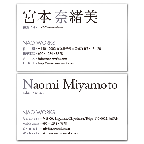 表面:日本語、裏面:英語表記の名刺のご依頼をいただきました - ランサーズ。
