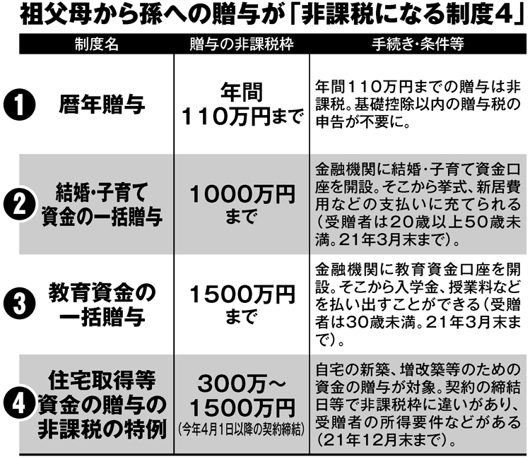 祖父母から孫への贈与が非課税になる制度4種 教育、住宅資金もマネーポストWEB。