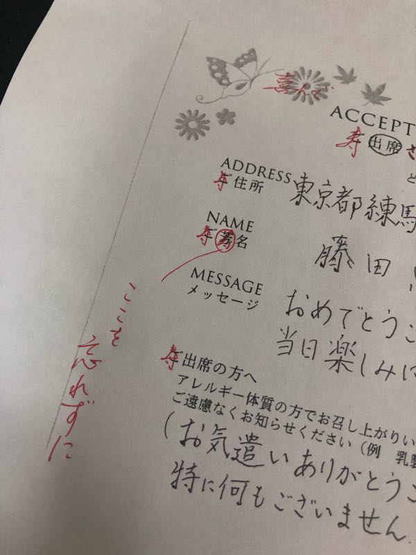 招待状返信はがきの寿消し!色は赤?上手に寿で消す方法GoGo Wedding。