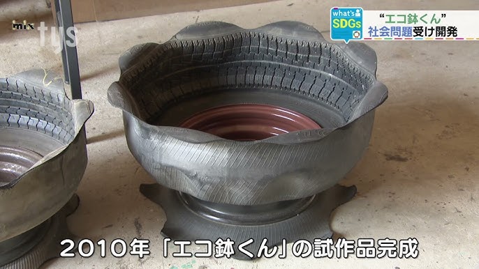 3 23「エコな植木鉢」:廃タイヤをまるごと再利用。