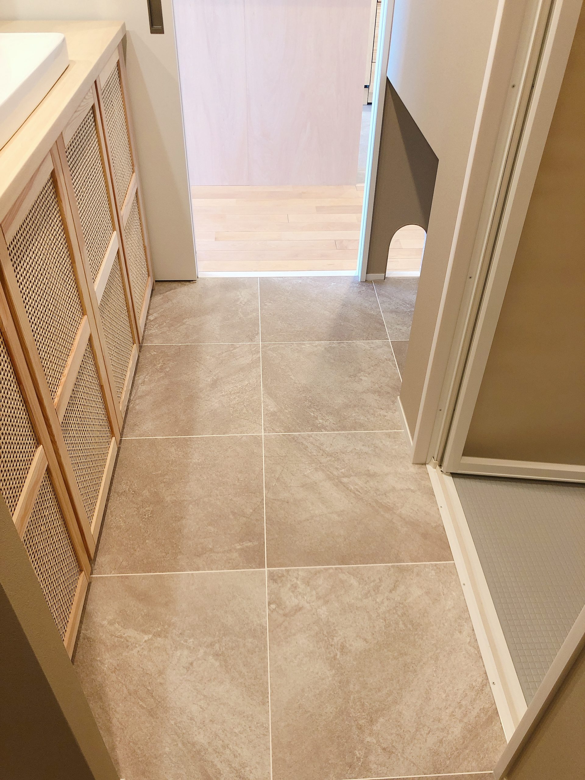 床材のお話〜🙌 うちのジャパンディぽさを担っている ココフロアですが、当初は水回りだけ 採用する予定でした🛁でも検討を進めるうちに、ジェイクにとって1番いいんじゃないかということと、今回のリノベは私も旦那も使ってみたかった建材を使ってみる実験ハウスでも。