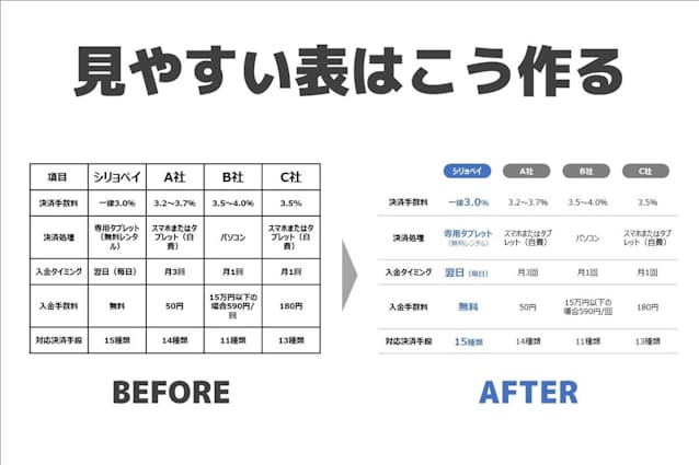 パワポでオシャレな比較表をデザインする方法 - 店デザ。