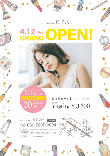 無料でデザインしよう!美容室・エステサロンのチラシ・印刷物クイックデザインONLINEネット印刷通販ならキングプリンターズ。