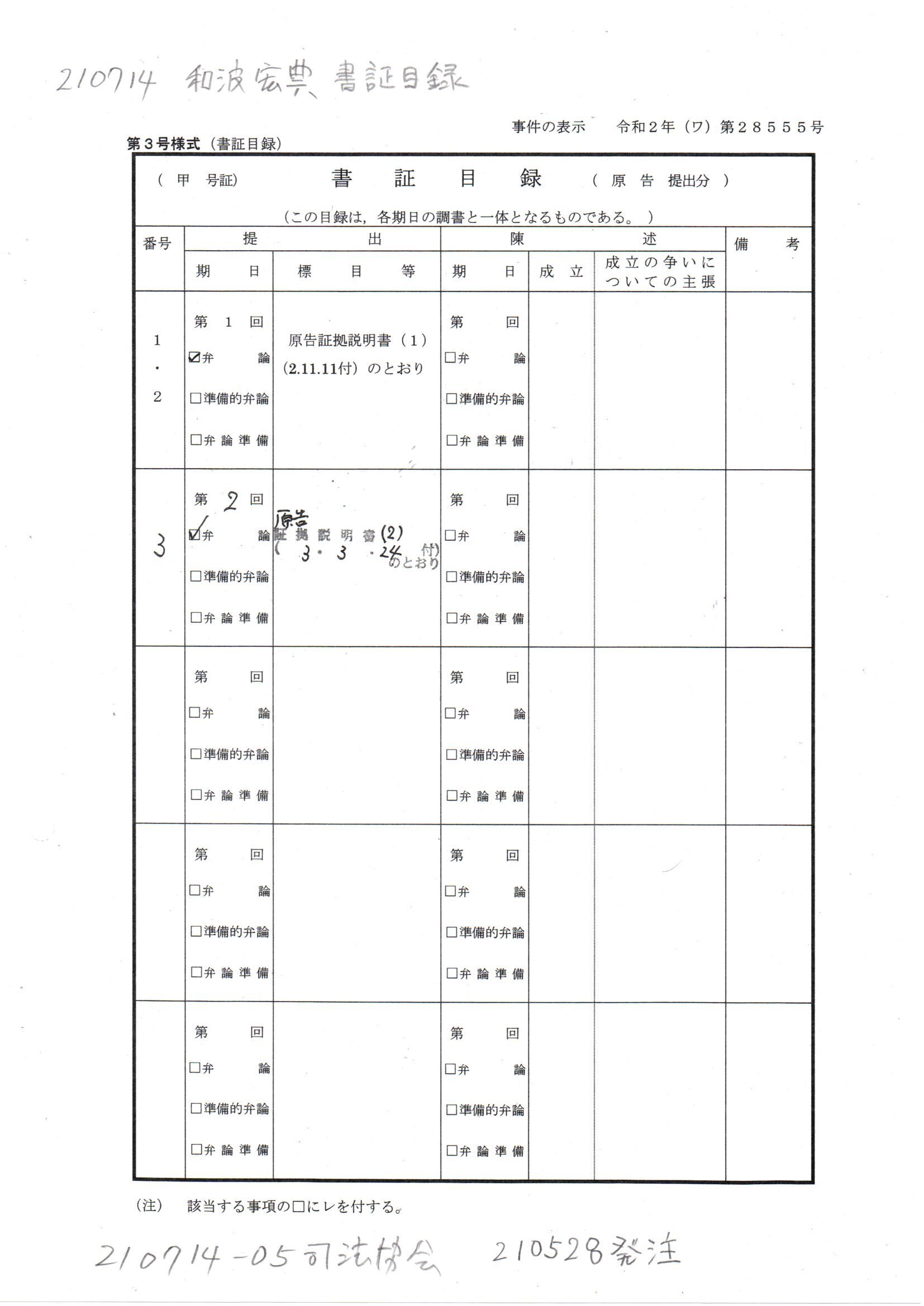 画像版 YH 210324 原告第1準備書面和波宏典裁判官実本滋裁判官浅井彩香裁判官thk6481。