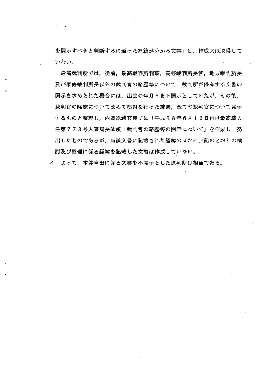 最高裁判所事務総局人事局総務課長和波宏典 別紙のとおり回答しましたので,参考までに送付。
