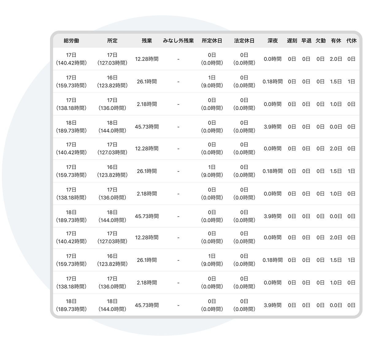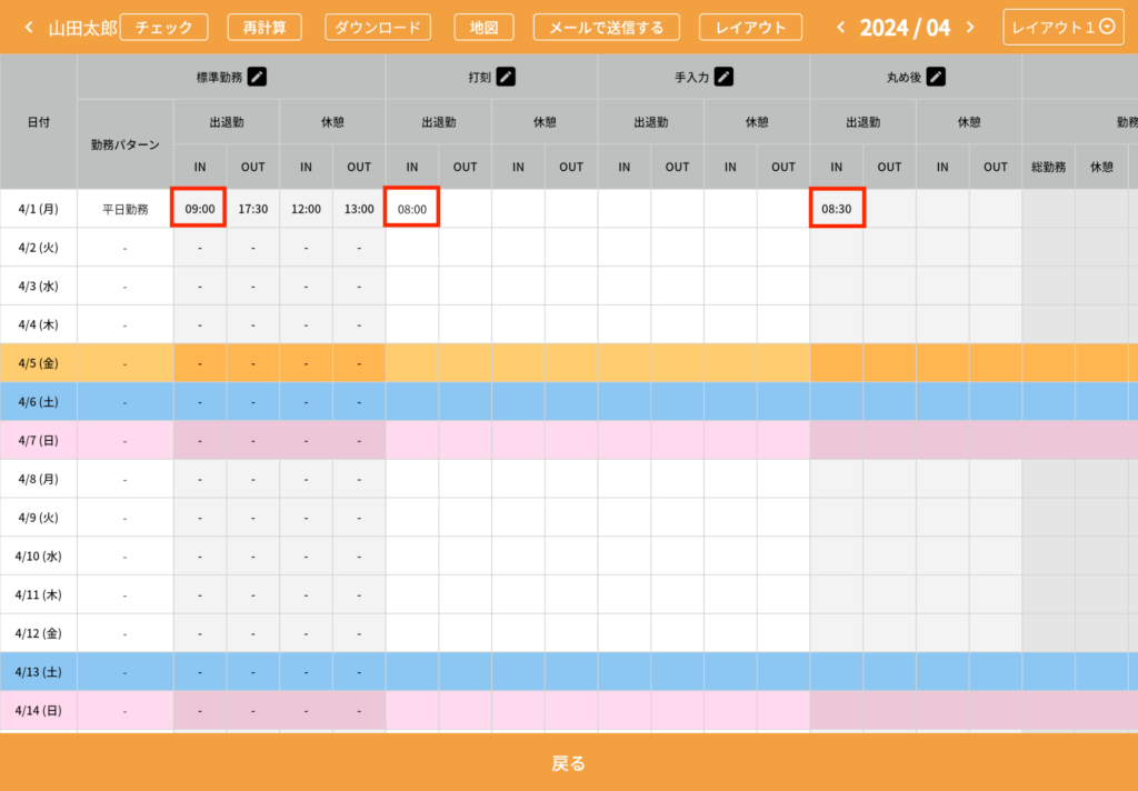 始業時刻より前の勤務時間の管理方法 ー「所定始業時刻まるめ」タイムカード・勤怠管理のiPadアプリタブレット タイムレコーダー。
