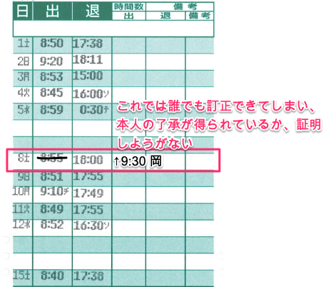上司や店長のタイムカード改ざん強要 指示 は違法!告発先と2つの罪リーガレット。