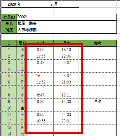 エクスポート タイムカード PDF に出勤時刻、退勤時刻が表示されない場合の原因と対処方法 – freee ヘルプセンタ。