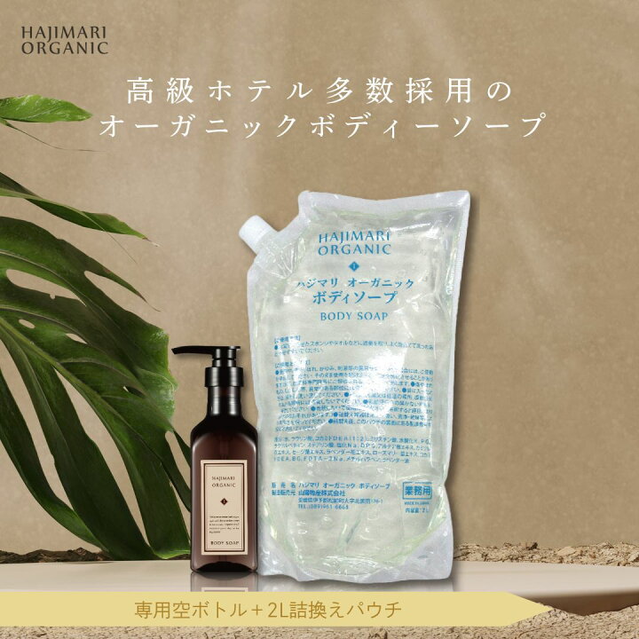 高級ホテルで多数導入 ハイクラスボディソープのハジマリ オーガニック 高級ホテルアメニティ 400mlボトル1本+詰替2L パウチ 保湿 さっぱりノンシリコン 大容量 無添加 シトラス ハーブ 業務用 いい匂い 山陽物産 極上SOARI ソアリ 楽天市場店。