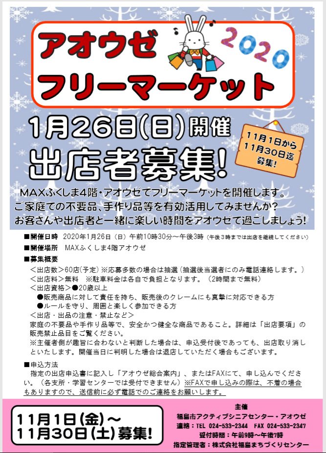 フリーマーケット2020冬 出店者募集イベント掲示板福島県北最大級ポータル『ぐるっと福島』。