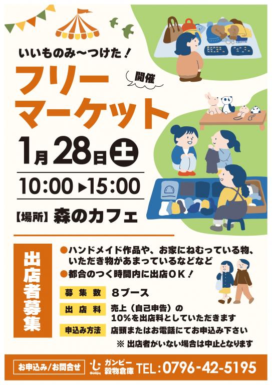 フリーマーケット開催のお知らせスーパーマーケット・ガンピ。