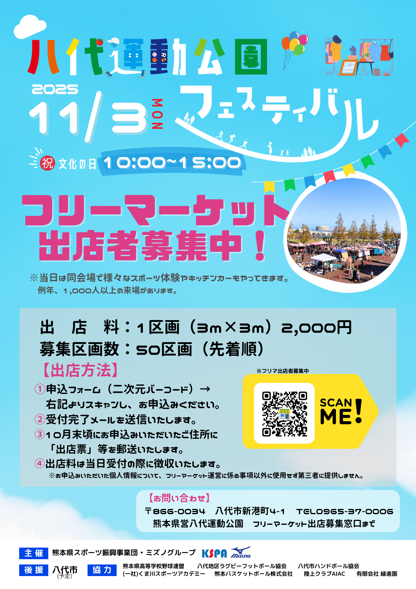 八代運動公園フェスティバル「フリーマーケット出店者」募集‼一般財団法人 熊本県スポーツ振興事業団。