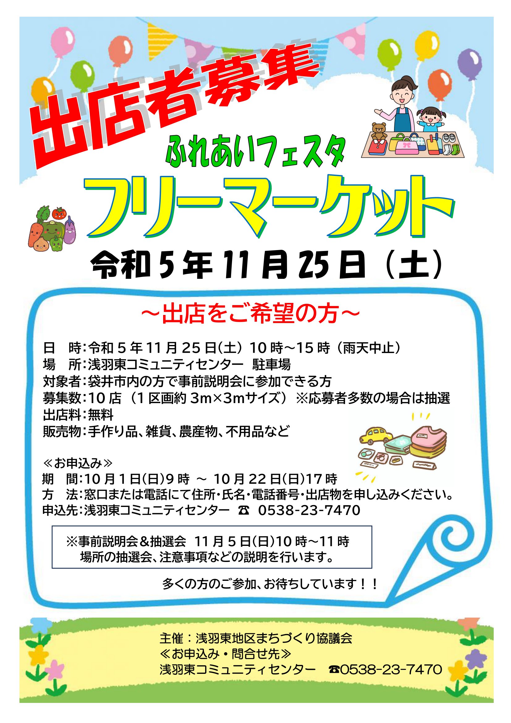 募集 フリーマーケット出店者募集!! - 袋井市コミュニティセンタ。