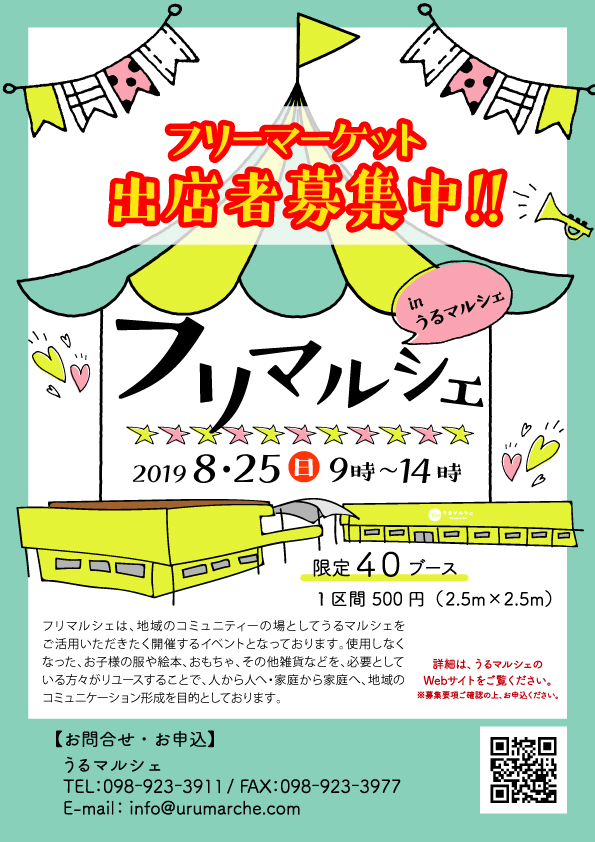 フリーマーケットイベント>フリマルシェinうるマルシェ !!8 25 日 出店者募集 - うるマルシェ。